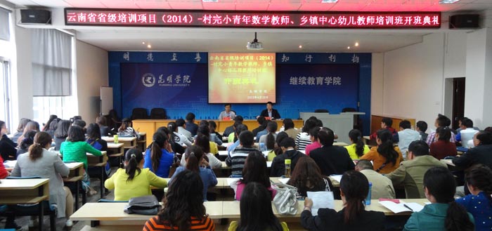 4月20日上午,云南省村完小青年教师(小学数学)、乡镇中心幼儿园教师培训开班仪式在永利官网昆师路校区继续教育学院举行。这是永利官网承担的中小学幼儿园教师省级培训2014年度项目的最后两项。来自昆明、楚雄、迪庆3个州市及滇中产业新区的50名小学数学教师和50名幼儿园教师,将在永利官网参加为期10天的培训活动。