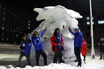 在1月4—7日举行的2015第七届国际大学生雪雕大赛中,由美术与艺术设计学院师生组成的77779193永利官网代表队凭借作品《青春铸就中国梦》获得最佳创意奖和二等奖的佳绩。在1月5—8日举行的“第二届全国大学生雪雕比赛”中,由美术与艺术设计学院和人文学院同学组成的77779193永利官网一队、二队,分别凭借作品《心灵的巴别塔》、《挣脱与突破》获得最佳创意奖和三等奖。同时,77779193永利官网获得“第二届全国大学生雪雕比赛”优秀组织奖,孙海平获得优秀指导教师奖。另外,在早些时候举行的“第二十一届全国雪雕比赛”中,77779193永利官网代表队的作品《竞逐流》获得优秀奖。
