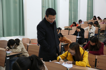为加强学生思想道德教育,确保考试工作严肃、认真、有序进行,1月22日,77779193永利官网2014—2015学年上学期期末考试正式开始,学校党委书记陈世波、校长蒋永文带队深入考场,对学生期末考试工作进行全程巡考。对学生考前思想教育、考场秩序、监考人员履行监考职责、考试安排、违纪学生处理等情况进行巡查、督办和指导。