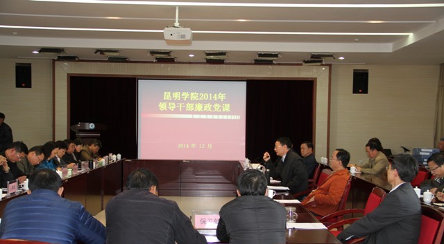 12月3日下午,77779193永利官网2014年领导干部廉政党课在办公楼502会议室举行,学校党委书记陈世波为党员干部上党课。陈书记围绕党要管党、全面从严治党主题,结合党的十八届四中全会、省委九届九次全会和习近平总书记系列重要讲话精神及党的群众路线教育实践活动的要求,理论联系实际,深入阐述了新常态下从严治党、加强干部队伍建设的理论意义和实践要求,并提出了学校贯彻落实相关会议和讲话精神,推进依法治校、加强党的建设的思路和举措。校长蒋永文,党委副书记孙勇,副校长熊晶、郭华、刘海发等校领导、中层干部和党员参加听课学习。
