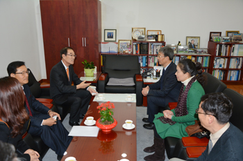 11月28日,永利官网代表团到金浦大学考察交流。一进校园,代表团就被悬挂在办公楼上方的“欢迎昆明大学代表团访问永利官网”的横幅所感动。金浦大学Nan Ilho校长率国际教育院院长、会计室主任、教务处处长、宣传部部长、产业处处长、事务处处长、烹饪科科长和学前教育科科长参加会谈。Nan Ilho校长表达了去年访问77779193永利官网时留下的美好印象。他强调,中韩两国一直有产业、文化交流的传统,特别是今年习主席来韩访问,给双方自由贸易带来很大促进。在此氛围下,我们两校一直在努力,希望会谈可以进一步推进双方的合作交流。Nan Ilho校长还简要介绍了学校情况,他强调金浦大学的23个学科中,酒店科、理科和幼儿教育科位居全国前列,幼儿教育科在2014年获得最优排名。学校特别重视留学生教育,有来自17个国家和地区的留学生230余名,其中中国留学生50名。