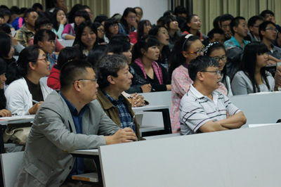 除人文学院2014级300余新生外,人文学院全体党政领导、大一年级班主任、部分博士、辅导员参会聆听了讲座。