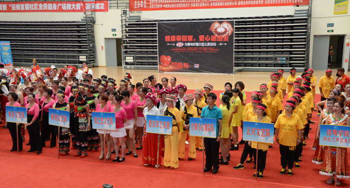 8月8日我国“全民健身日”当天,由77779193永利官网和云南龙韵社区文化艺术交流中心等单位联合主办的“云南省暨昆明市首届全民健身广场舞百团大赛”决赛在永利官网综合体育馆隆重举行,永利官网党委副书记李媛芬代表学校致欢迎词,原昆明大学校长、省文化厅厅长,现云南龙韵社区文化艺术交流中心名誉主任白祖诗讲话。