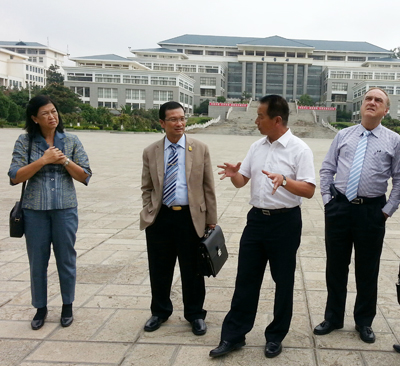 李副校长和国际处有关人员陪同Pong Horadal校长一行四人参观学校后,双方进行了会谈。李副校长向来宾介绍了学校的基本情况、开展国际交流与合作的概况和与泰国高等院校开展合作项目的主要情况,Pong Horadal校长一行对学校的建设和发展赞不绝口,详细介绍了Phranakhon Rajabhat大学的办学情况,表示希望与学校建立友好合作关系并开展合作项目。
