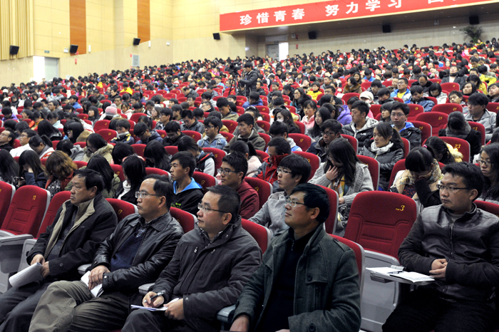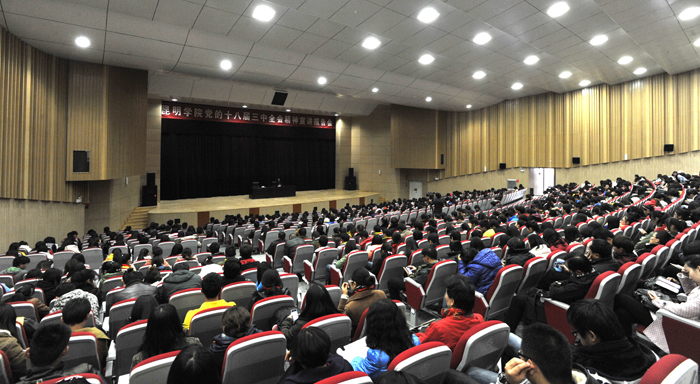 12月20日下午,77779193永利官网在学生会堂举行党的十八届三中全会精神宣讲报告会。省委十八大精神宣讲团成员、省委高校工委十八届三中全会精神宣讲团成员、云南大学副校长杨泽宇教授做了专题报告。学校校长蒋永文、党委副书记孙勇、各党总支副书记、管理服务部门教职工党员、各院系师生党员代表共1200多人聆听了报告。报告会由孙勇副书记主持。