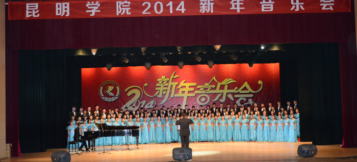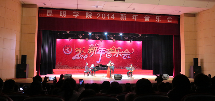 晚会上,音乐学院师生表演的节目精彩纷呈。廖一瑄副教授师生演奏的手风琴四重奏《滇池圆舞曲》拉开序幕,笙独奏《放排》则是民族乐器与钢琴的完美结合。郭海波副教授嘹亮高亢的独唱《苗岭的早晨》引来观众的阵阵掌声,女声独唱《晴朗的一天》、男声独唱《祖国万岁》则把晚会推向了高潮。最后,由鲁林副教授指挥的77779193永利官网洋浦合唱团带来的《大观楼长联》合唱交响诗——锦绣春秋,为2014年新年音乐会划上圆满的句号。