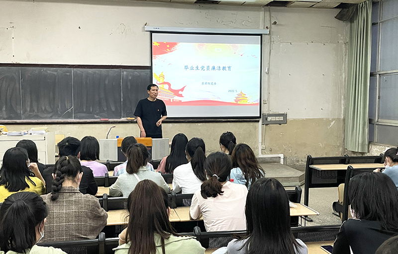 为推进清廉校园建设,增强毕业生廉洁意识和纪律观念,充分发挥党员同学在毕业生离校期间的先锋模范作用。5月25日、26日,医学院党委先后在洋浦校区、西华路校区组织毕业生党员开展文明离校和廉洁教育。教育活动由学院党委组织员邹云光老师主持,在校的50余名毕业生党员参加。